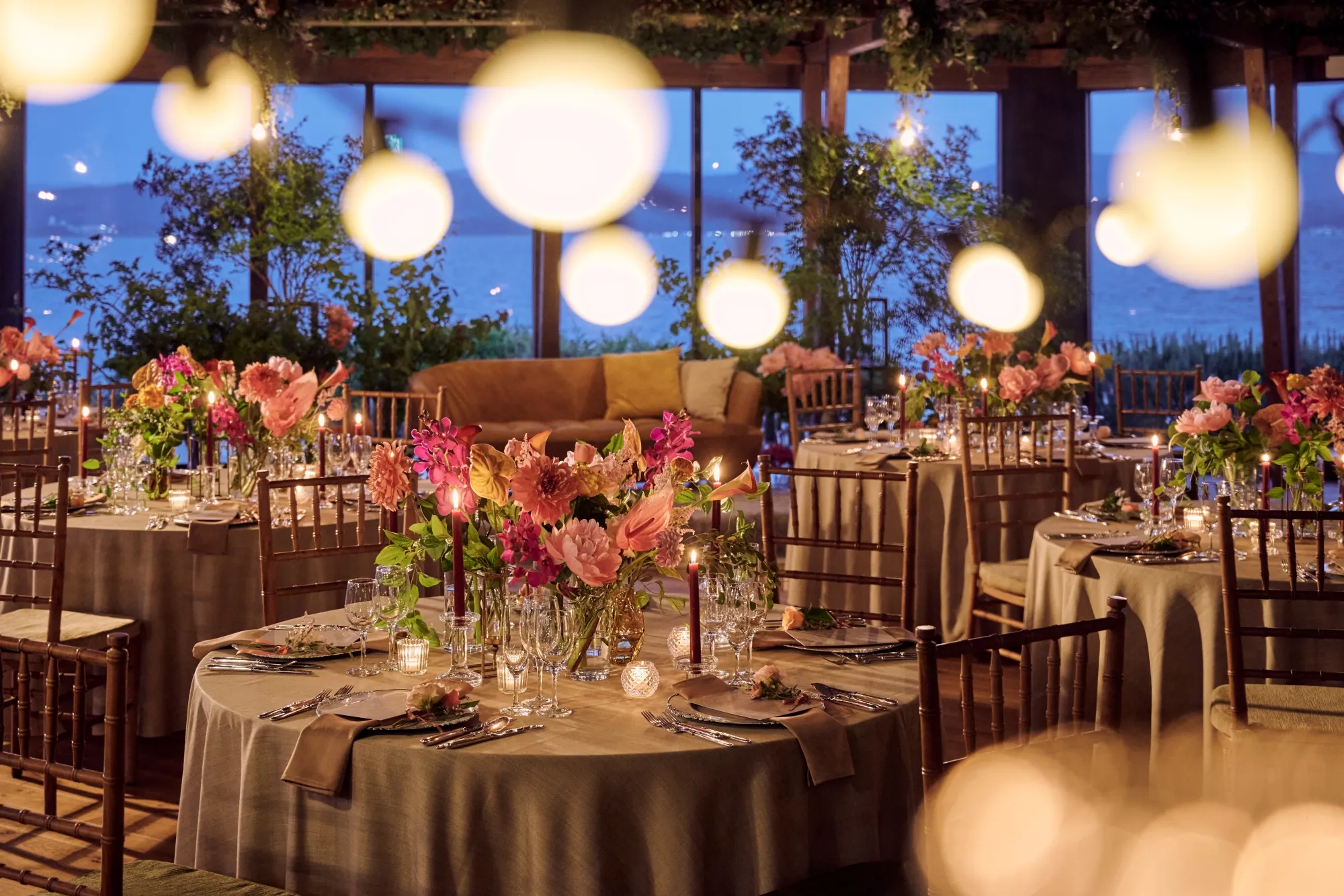 最大の魅力は会場を囲むように配された窓から見渡す宍道湖のパノラマビュー。